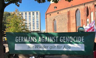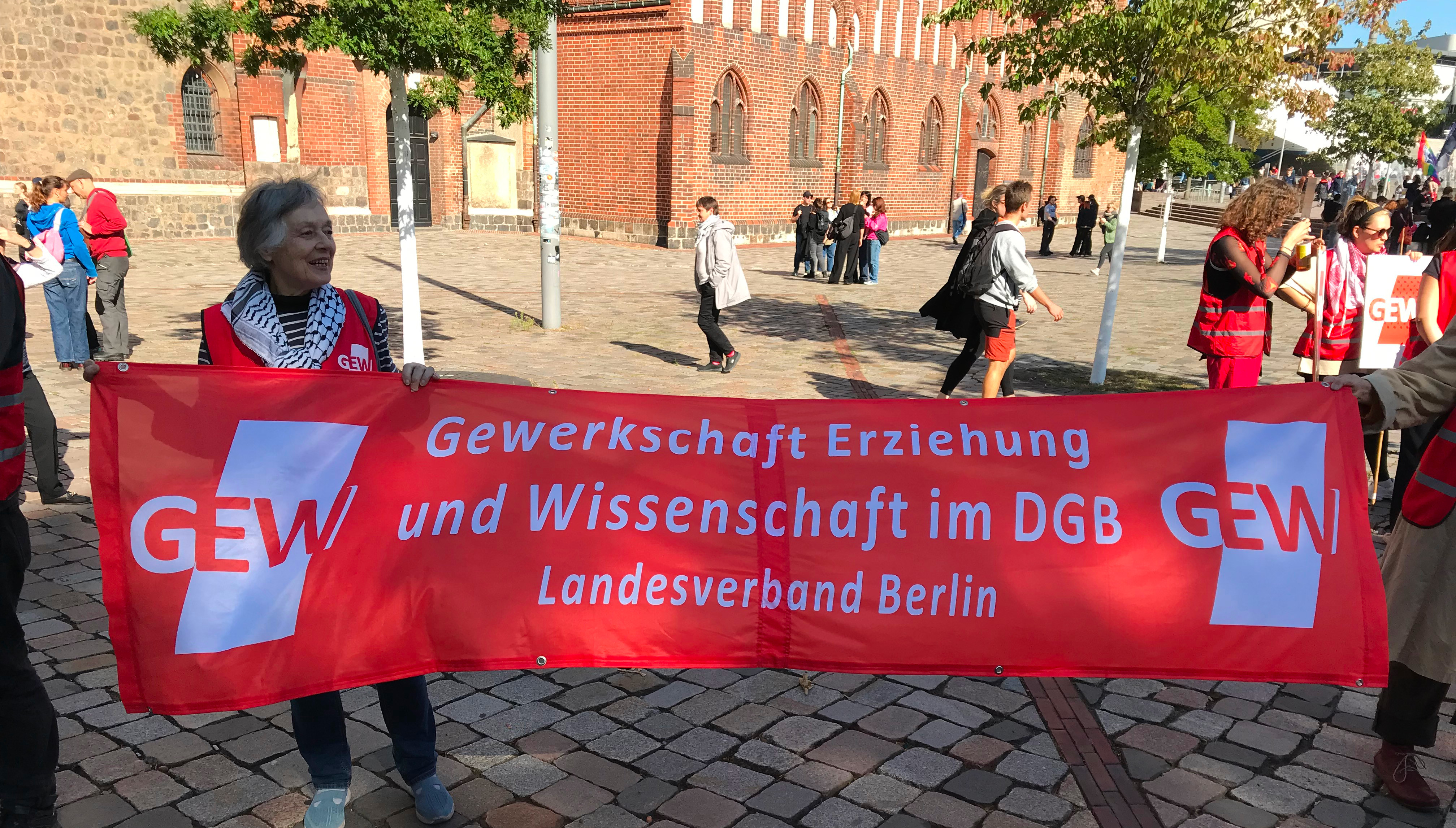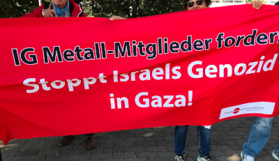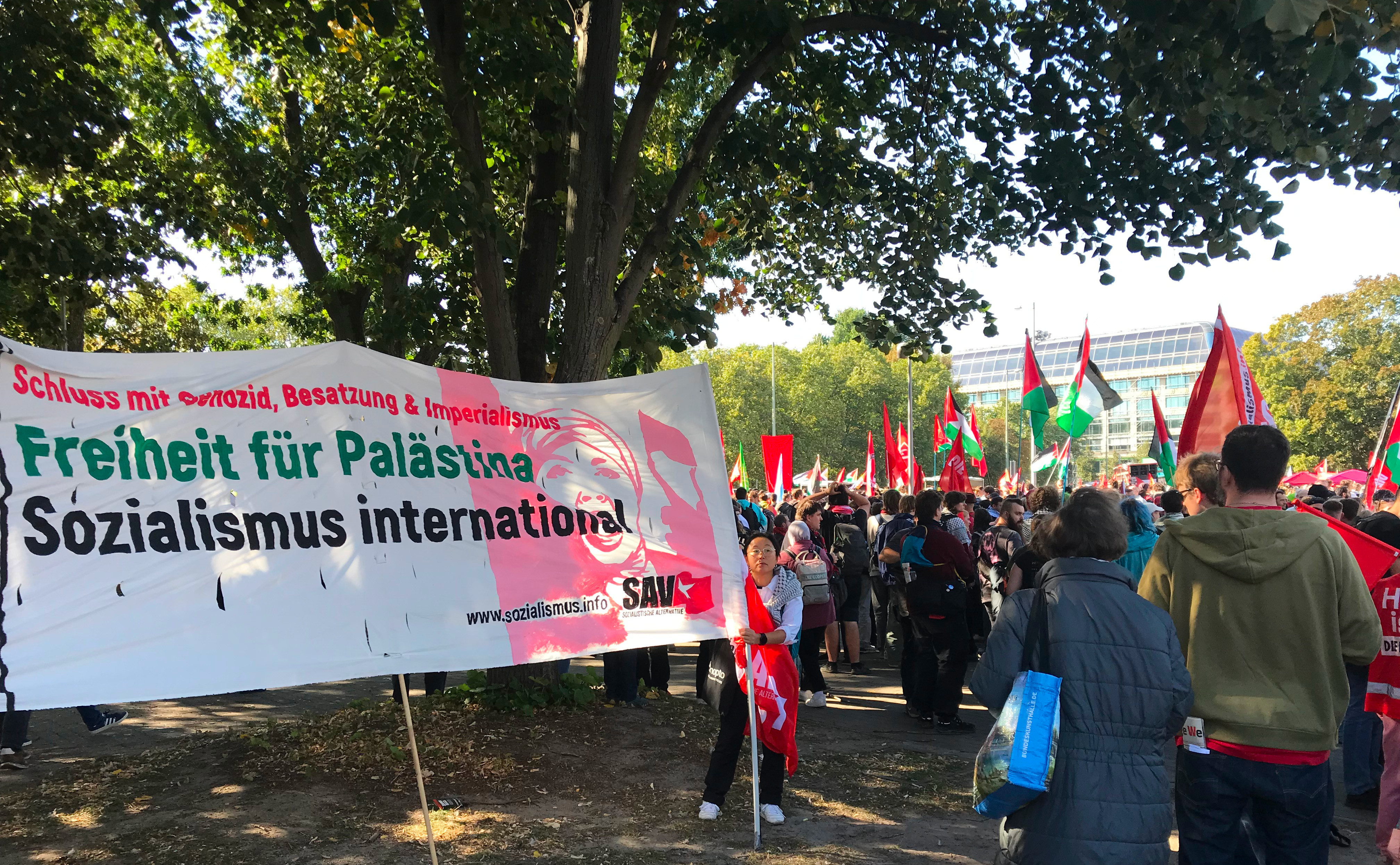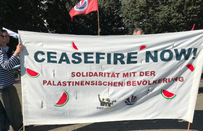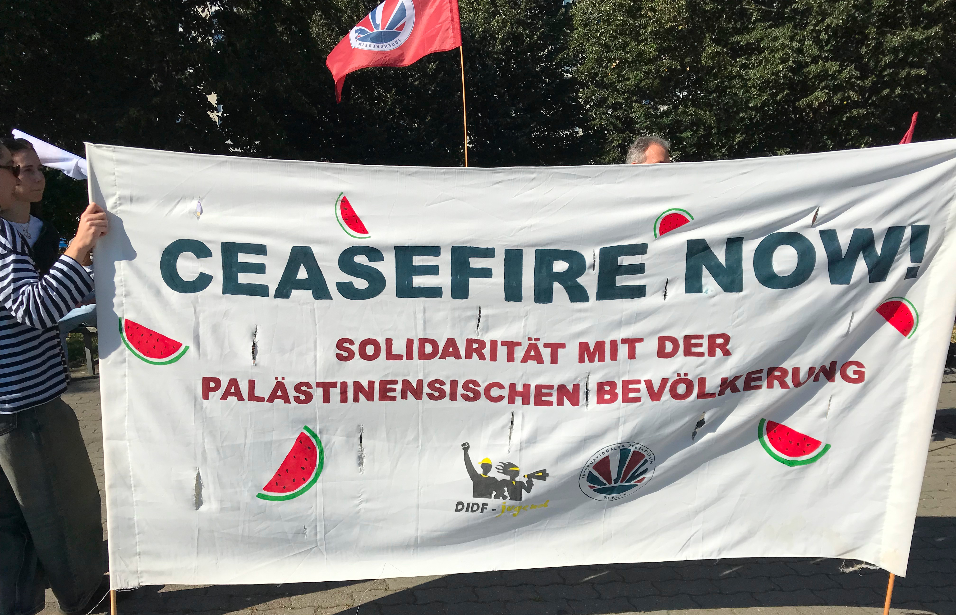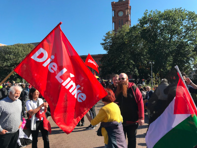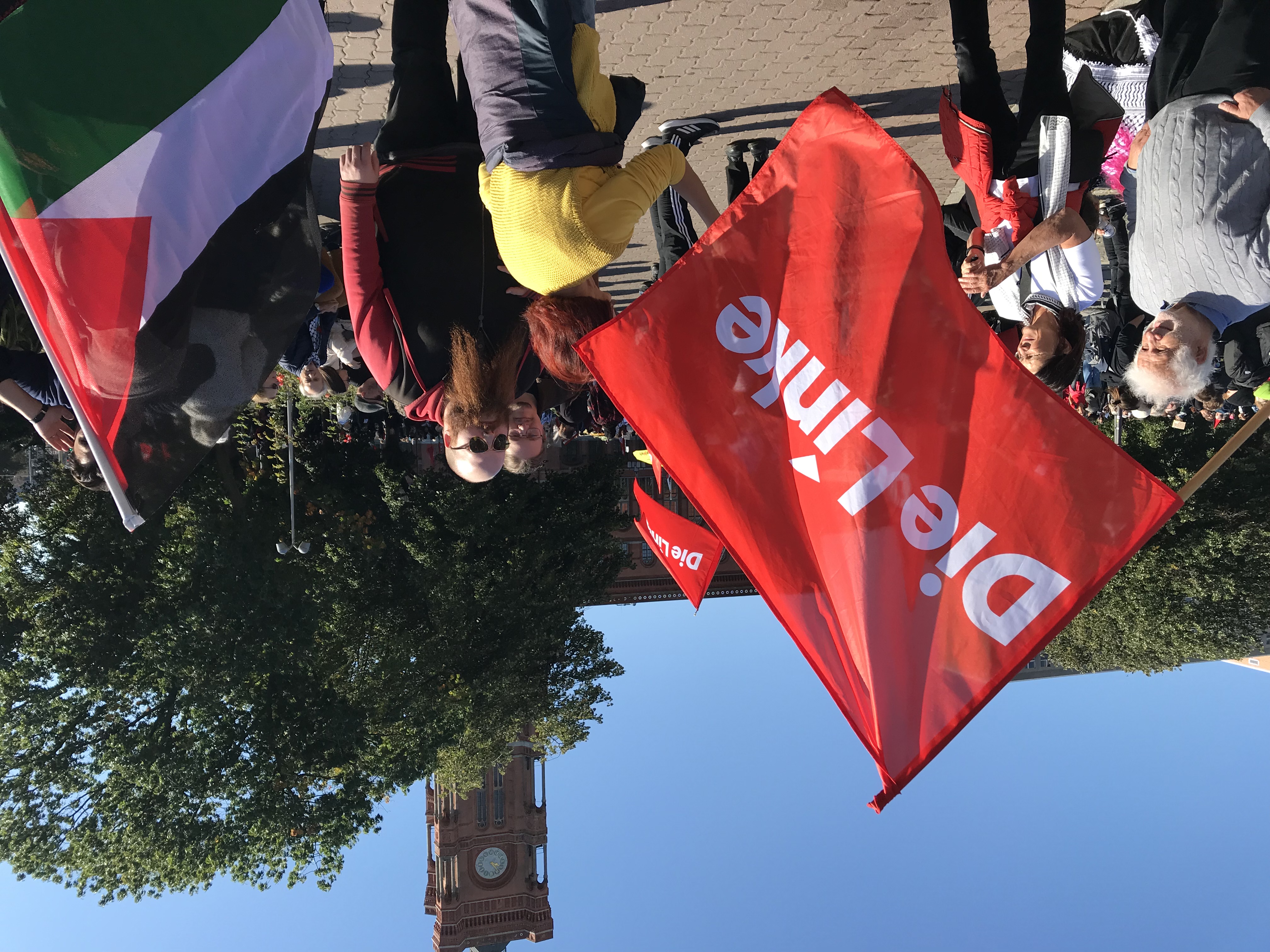 Größte Palästina-Demo seit Jahren![]() ![]() Mehr als 6 Stunden waren an die 100.000 Menschen in Berlin bei der größten und längsten Demo gegen die Kriegsverbrechen der israelischen Regierung auf der Straße - die Polizei zählt irgendwann 60.000. Allerdings schreibt der Tagesspiegel: "Eine Polizeisprecherin schloss aber gegen 19.30 Uhr eine größere Zahl nicht aus." Viele TeilnehmerInnen haben zwischen 14 und 22 Uhr auch nur Teilstrecken auf sich genommen. Der unten verlinkte Artikel gibt einen ausführlichen Ablauf des Geschehens. Aktion Freiheit statt Angst e.V. war mit mehreren Aktiven dabei. Wir haben uns gefreut, dass auch mehrere Gewerkschaftsgruppen, u.a. aus GEW und IG-Metall ihre Teilnahme durch Transparente deutlich machten. ![]() ![]() Auf der Startkundgebung am Neptunbrunnen am Alexanderplatz spricht u.a. der jüdische Musiker Michael Barenboim. Er berichtet von täglich vielen Toten, von leidenden und hungernden Kindern und fehlender medizinischer Versorgung. Dabei vergleicht er die jetzige Situation mit der Nakba (Katastrophe), der Vertreibung und Flucht von etwa 700.000 Palästinensern aus ihrer Heimat im Jahr 1948. Auch die Parteivorsitzende der Linken, Ines Schwerdtner, stellt sich auf die Seite der Demonstrierenden und sagt: "Ich verstehe euren Schmerz, denn das, was in Palästina passiert, ist ein Völkermord." Weiter sagte sie: "Kanzler und Minister reden, aber sie handeln nicht. Sie sprechen von ‘Staatsräson’, während Krankenhäuser in Schutt und Asche gelegt werden. Sie schweigen zum Völkermord – und machen sich mitschuldig." Die Tatsache des Völkermords haben UN Gremien nach ihren Untersuchungen festgestellt und auch der Internationale Strafgerichtshof in Den Haag hat in seinem Forderung nach Verhaftung des israelischen Ministerpräsidenten dies festgestellt. ![]() ![]() Nachdem die Demo den Großen Stern erreicht hat, beginnt dort um 17h eine Kundgebung mit vielen RednerInnen und Künstlern. Auch hier spricht der jüdische Musiker Michael Barenboim erneut: "Israels Völkermord ist der Versuch, Palästinas Vergangenheit, Gegenwart und Zukunft zu zerstören". Der frühere Grünen-Politiker Basem Said nannte das Vorgehen des israelischen Militärs "die systematische Zerstörung eines Volkes, Stein für Stein, Körper für Körper" und beschuldigte die deutsche Regierung. Sie "beschönige den Genozid" und kriminalisiere Proteste in Deutschland. Im weiteren Verlaufen sprachen Moderatorin und Schauspielerin Pegah Ferydoni, Riad Othman von der Hilfsorganisation Medico International, der Rapper Massiv, die Berliner Hip-Hop-Formation "K.I.Z.". Mit ihren Liedern "Görlitzer Park" und dem bekannten Song "Hurra die Welt geht unter" endet die Veranstaltung. Kommentar: RE: 20250928 All Eyes on Gaza Auch noch wichtig zur Gaza-Demo in Berlin Be., 28.09.25 11:41 Kategorie[25]: Schule ohne Militär Short-Link dieser Seite: a-fsa.de/d/3Kw Link zu dieser Seite: https://www.a-fsa.de/de/articles/9294-20250928-all-eyes-on-gaza.html Link im Tor-Netzwerk: http://a6pdp5vmmw4zm5tifrc3qo2pyz7mvnk4zzimpesnckvzinubzmioddad.onion/de/articles/9294-20250928-all-eyes-on-gaza.html Tags: #Gaza #Genozid #Israel #Palästina #Demo #Hunger #Barenboin #Schwerdtner #SchuleohneMilitär #Atomwaffen #Militär #Bundeswehr #Aufrüstung #Waffenexporte #Drohnen #Frieden #Krieg #Friedenserziehung #Menschenrechte #Zivilklauseln Erstellt: 2025-09-28 09:08:17 Aufrufe: 143 Kommentar abgeben |