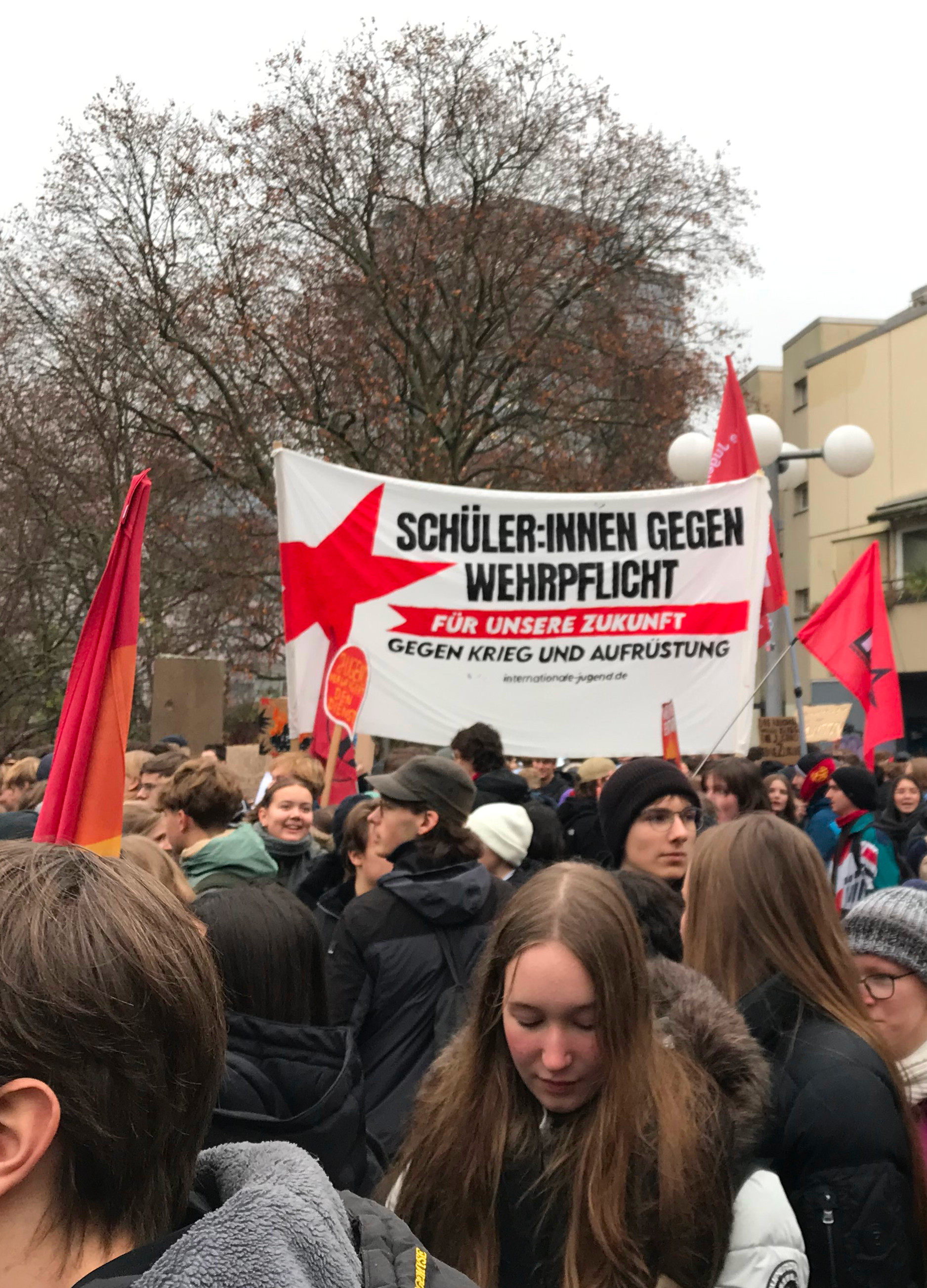 Die Schülerdemo führte vom U Bahnhof Hallesches Tor zum Oranienplatz. Dort kamen dann auch ältere Menschen dazu, um ab 16h von dort zum Rathaus Neukölln zu demonstrieren. Allen gemeinsam war der Wunsch nach Frieden und die Abscheu gegen Zwangsdienste. Viele befürchten, dass die ungehemmte Aufrüstung nur zu einem Krieg führen könne. Nach einer unglaublichen Aufrüstungsspirale sind wir inzwischen bei mehr als einer Verdopplung unseres Kriegshaushalts angekommen. Noch vor wenigen Jahren waren es 30 Milliarden Euro im Jahr, die wir an die Waffenschmieden gezahlt haben, nun sind wir in diesem Jahr bei über 80 Milliarden und dazu kommt noch das nach oben offene "Sondervermögen Bundeswehr". Das Lied von Reinhard Mey aus dem Jahr 1986 "Nein meine Söhne geb' ich nicht" hat wieder leider mehr Aktualität als nach den Jahren der Entspannung gedacht. Es wird Zeit das Bündnis "Schule ohne Militär" aus Schülerinnen, Schülern, Lehrern und Eltern wieder zu beleben. Mehr dazu bei https://frikoberlin.de Kategorie[25]: Schule ohne Militär Short-Link dieser Seite: a-fsa.de/d/3LM Link zu dieser Seite: https://www.a-fsa.de/de/articles/9367-20251206-schulstreiks-gegen-wehrpflicht.html Link im Tor-Netzwerk: http://a6pdp5vmmw4zm5tifrc3qo2pyz7mvnk4zzimpesnckvzinubzmioddad.onion/de/articles/9367-20251206-schulstreiks-gegen-wehrpflicht.html Tags: #Schulstreik #bundesweit #Wehrdienst #Kriegsdienst #Verweigerung #Antrag #Propaganda #FakeNews #SchuleohneMilitär #Atomwaffen #Militär #Bundeswehr #Aufrüstung #Waffenexporte #Drohnen #Frieden #Krieg #Friedenserziehung #Menschenrechte #Zivilklauseln Erstellt: 2025-12-06 09:55:00 Kommentar abgeben |