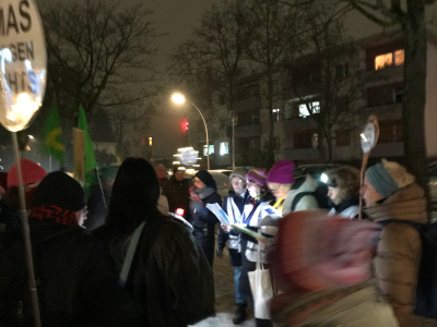 Deshalb waren Aktive von Aktion Freiheit statt Angst gestern Abend auch mit eigener Beleuchtung bei einer Dunkel-Demo durch den S Bahnhof Lichterfelde Ost zur sogenannten "Staatsreparatur" dabei. Angeblich soll dort "demokratische und politische Bildung" (1) vermittelt werden. Hauptsächlich sind allerdings Rednerinnen und Redner eingeladen, die dem rechtsextremen Spektrum zugeordnet werden.