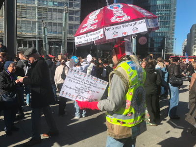 Dazu darf es nicht kommen! Schon die aktuelle Lage mit einem US Präsidenten, der gewählte Präsidenten in Staatsstreichmanier von seinem Militär entführen lässt und Tausende Kilometer entfernte Länder wie den Jemen und den Iran bombardiert, ist gefährlich genug. Dringend notwendig ist es Initiativen der UNO zu unterstützen und über die diversen Konflikte zu verhandeln, statt immer mehr aufzurüsten und das Leben und den Wohlstand von Millionen Menschen zu bedrohen. Die Schulstreiks gegen die Wehrpflicht werden weiter gehen, darin waren sich alle Sprecher einig. Der nächste bundesweite Schulstreik ist für Freitag, den 8. Mai, den Tag der Befreiung angekündigt. Verständig euch in euren Schulen über die nächste Aktionen! Und sagt allen Bescheid, wenn sich "Karriereberater" der Bundeswehr in euren Schulen ankündigen. Die uns bekannten nächsten öffentlichen Auftritte der Bundeswehr in Berlin und Brandenburg werden sein: